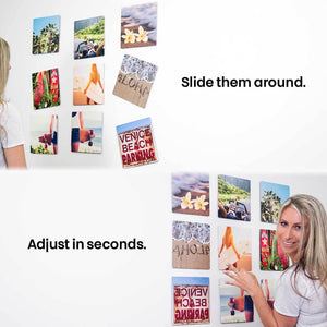 Using our patent pending system, Slidetiles can be mounted magnetically on walls and moved around as easy as refrigerator magnets.